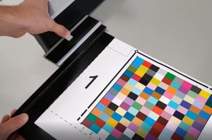 Dieser Vorlagenhalter ermöglicht die Montage der Charts im Rahmen und stellt sicher, dass bei der Messung keine UV-Filterung auftritt.