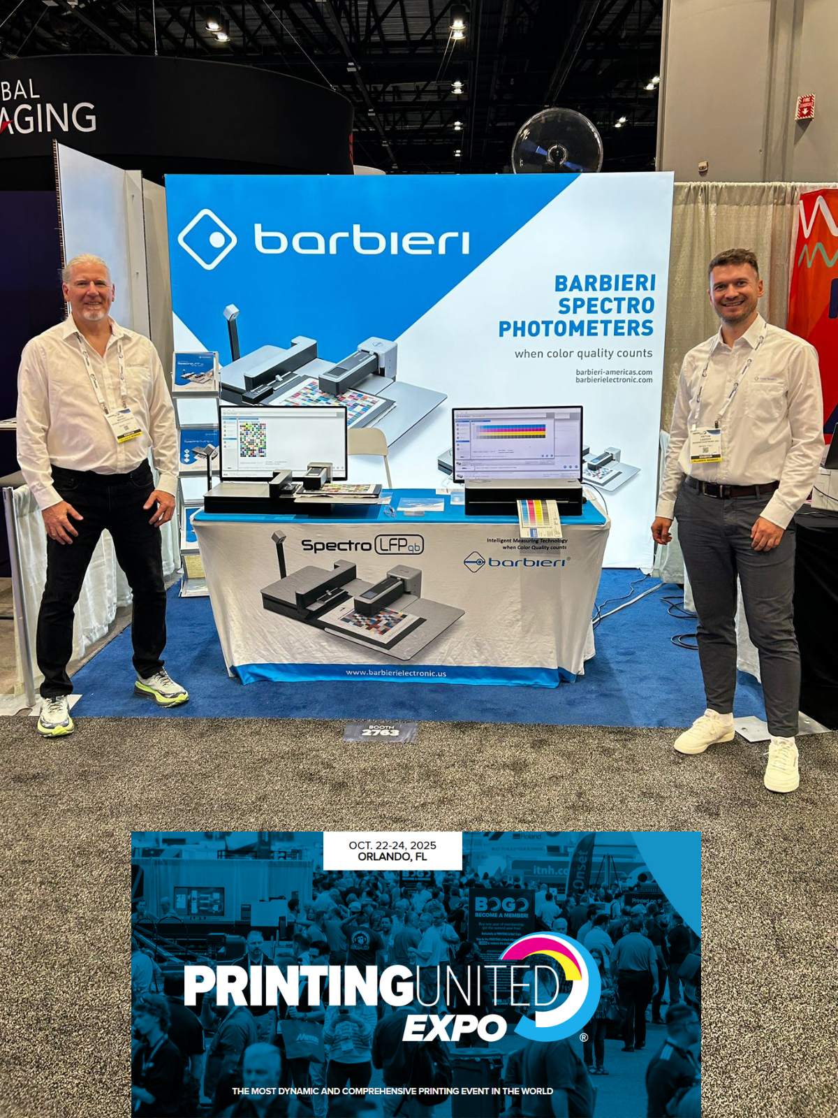 Barbieri is present at Printing United Expo 2025, Oct. 22-24, ORLANDO, FL, showing our spectrophotometers for ensuring excellent color quality in professional digital printing